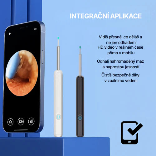 HD kamera ti přesně ukáže, co děláš, takže odpadají rizika „naslepo“, jako když používáš vatové tyčinky.